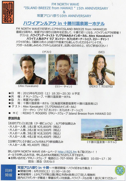 参加費 出演者・視聴者共お一人様 \1,000(ハワイアンランチ)