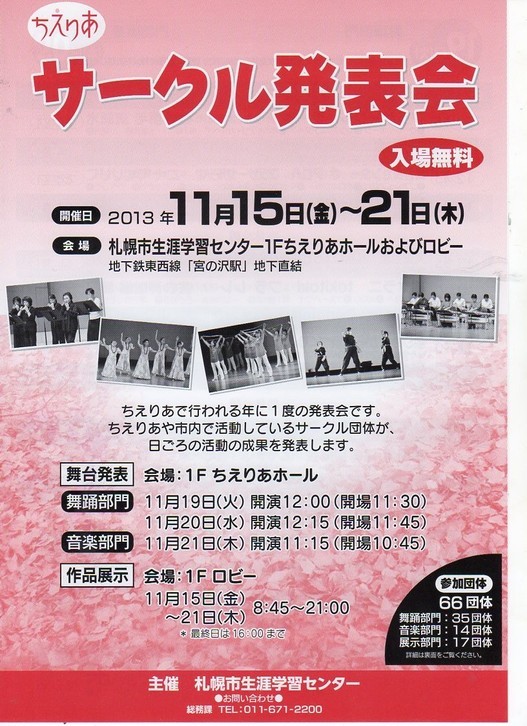 生涯学習センター ちえりあで行われる、年に一度の発表会に、