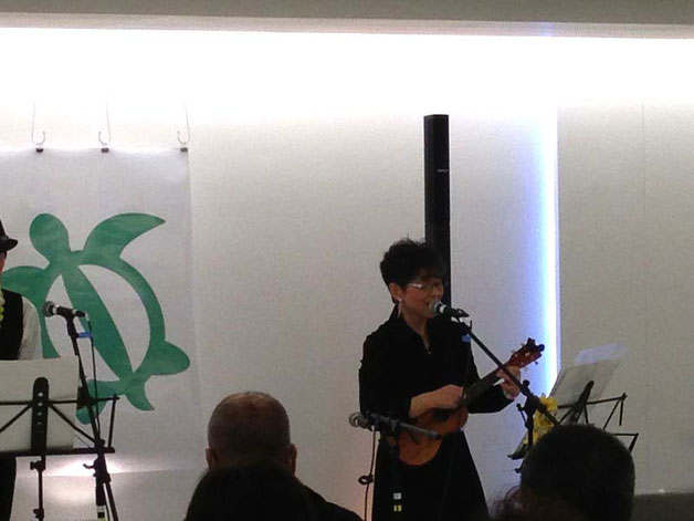谷本さんによる演奏(谷本さんはオリジナルウクレレの製作もしております)